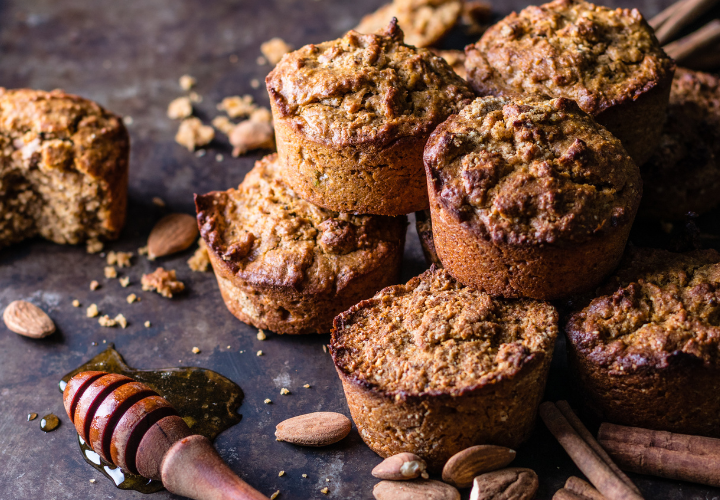 These warmly spiced whey protein muffins have the comforting flavour of cinnamon, balanced with the natural sweetness of honey and sweet potato.