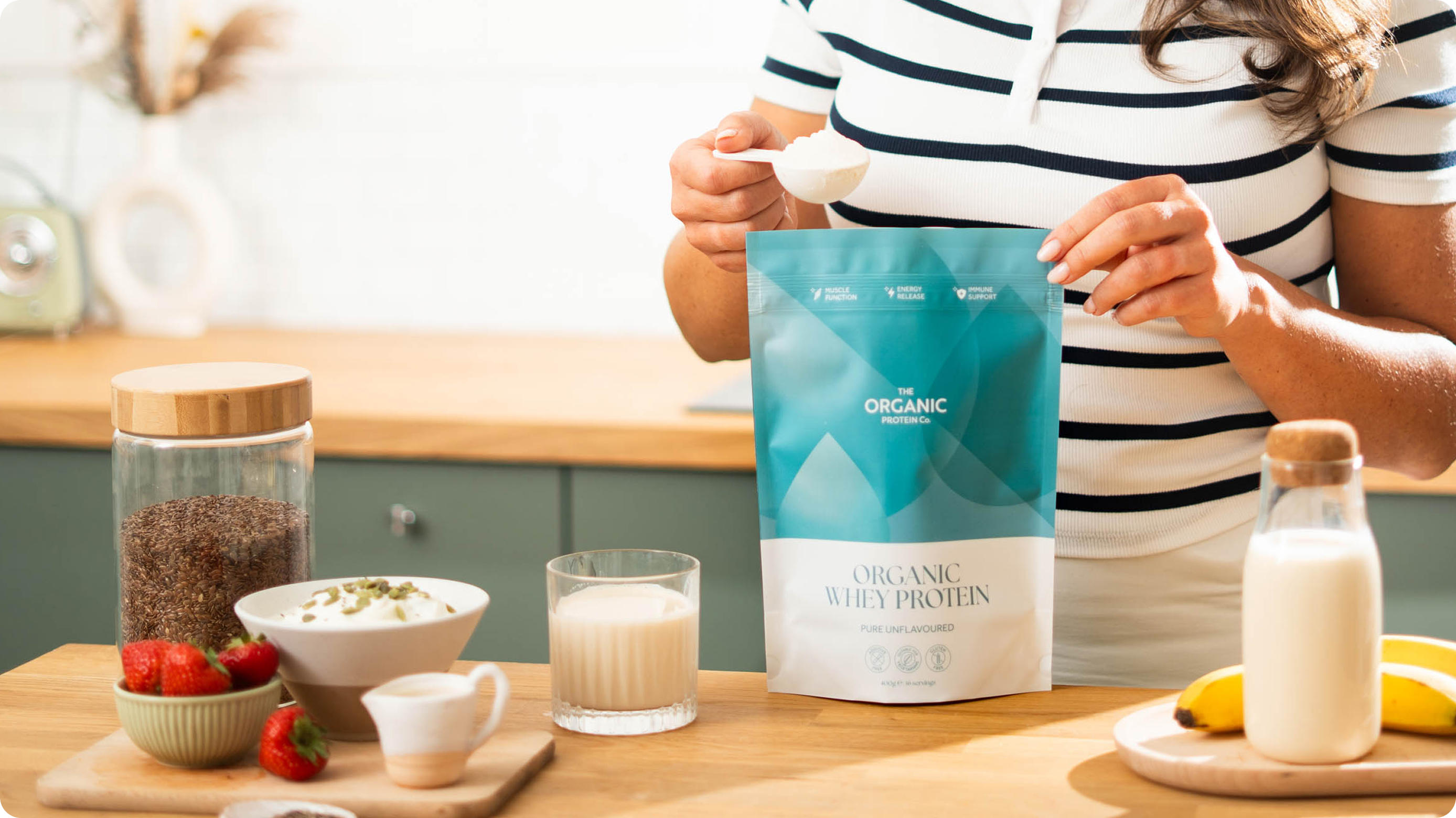 Thank you for the question. Generally, one serving per day is enough for most people, though this really depends on your activity levels and how much protein you're getting from other foods. A safe bet is to stick to one serving. However, if you want to be precise, we recommend calculating your specific daily protein needs based on your age, gender, and goals. Once you know that number, you can see how much you are getting from your meals and use whey protein to fill the gap.